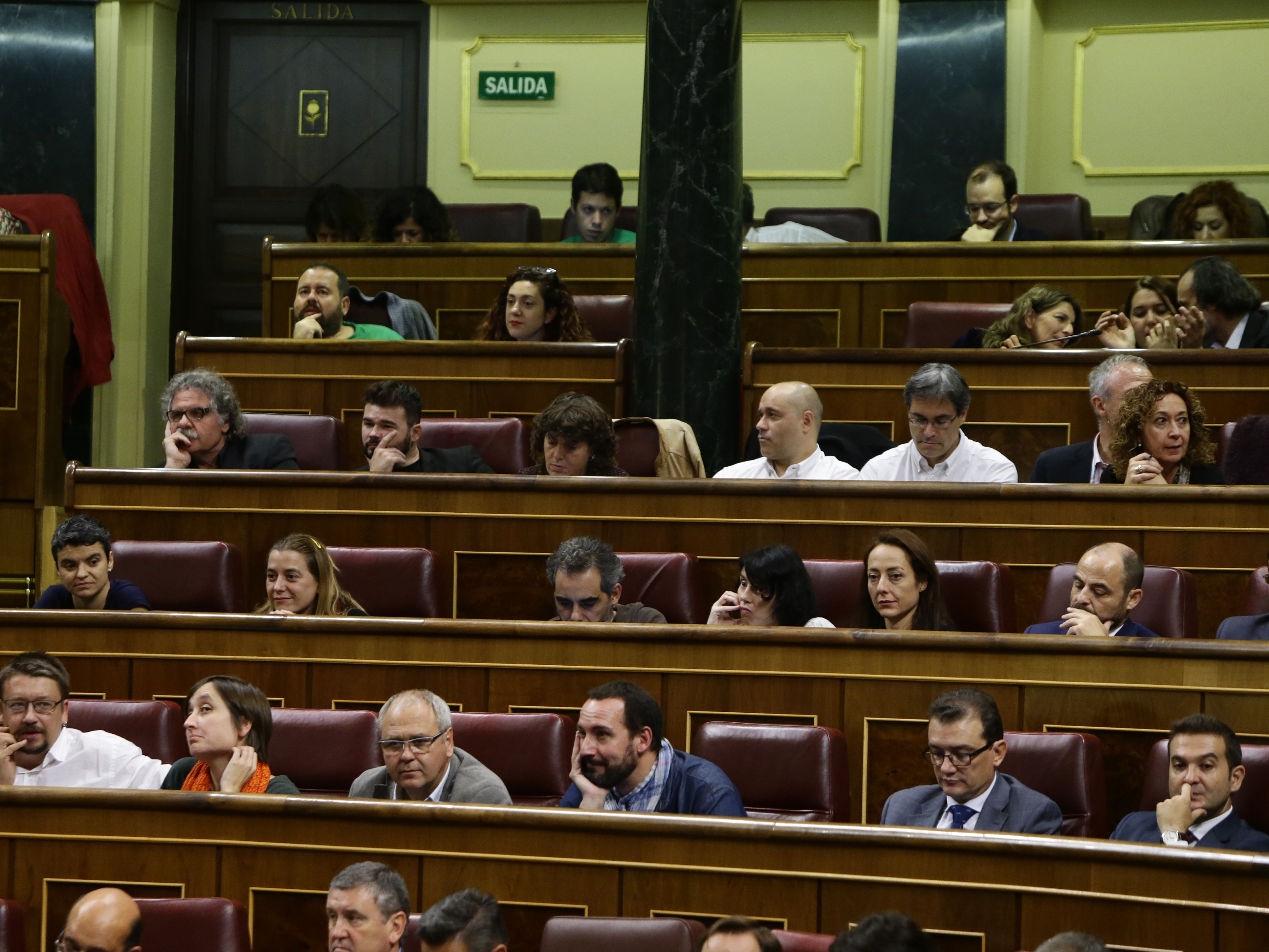 La bancada de Esquerra Republicana de Catalunya escucha el discurso de Mariano Rajoy, candidato a la Presidencia del Gobierno