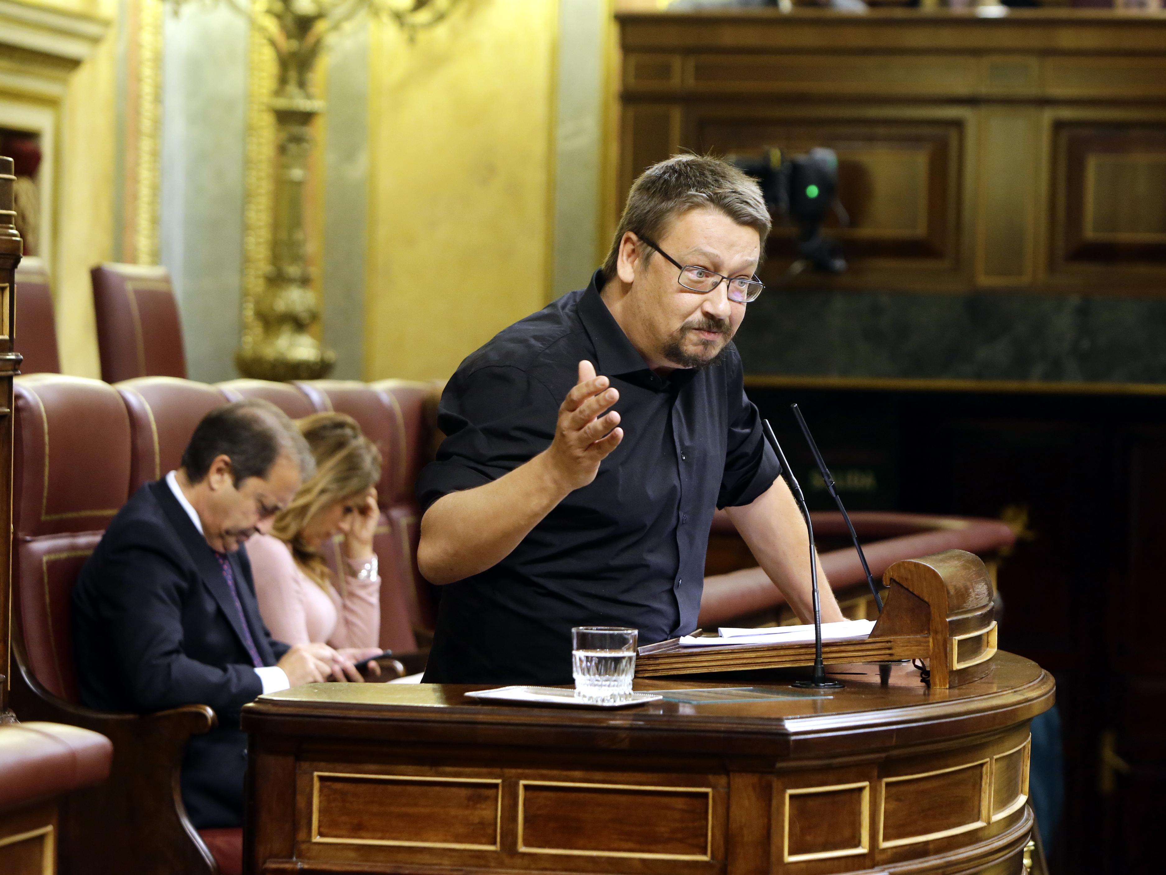 Xavier Domènech, del Grupo Parlamentario Unidos Podemos- En Comú Podem - En Marea, sube a la tribuna de oradores
