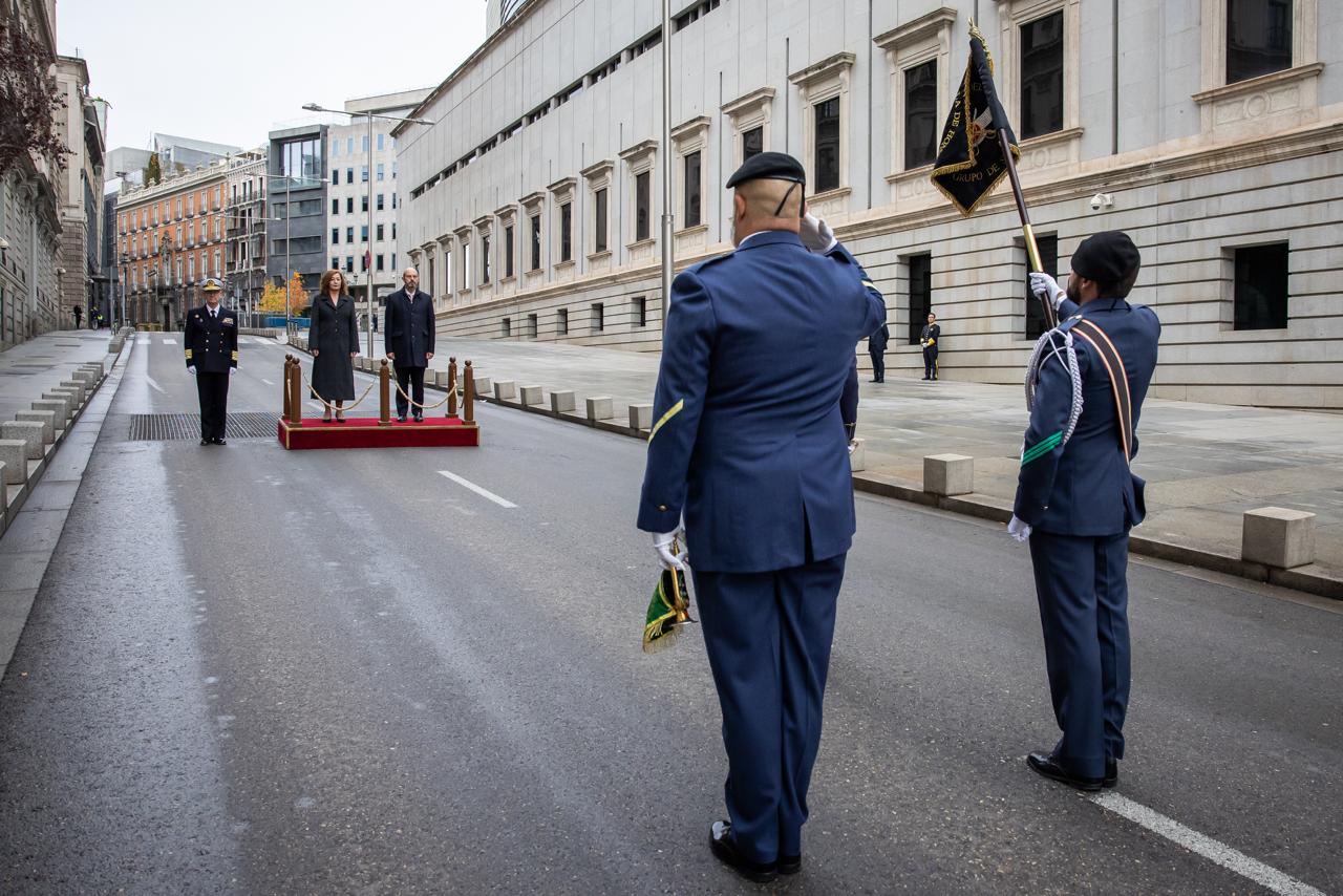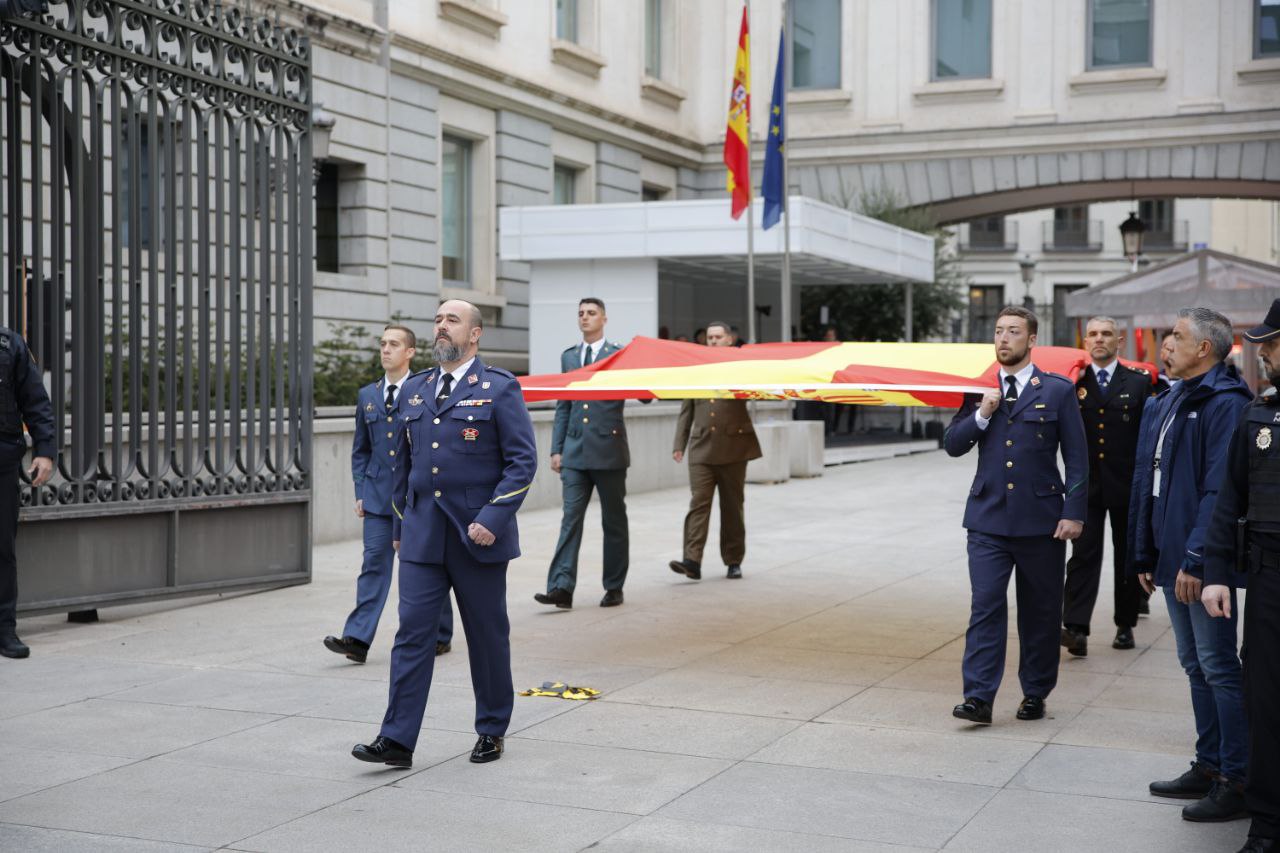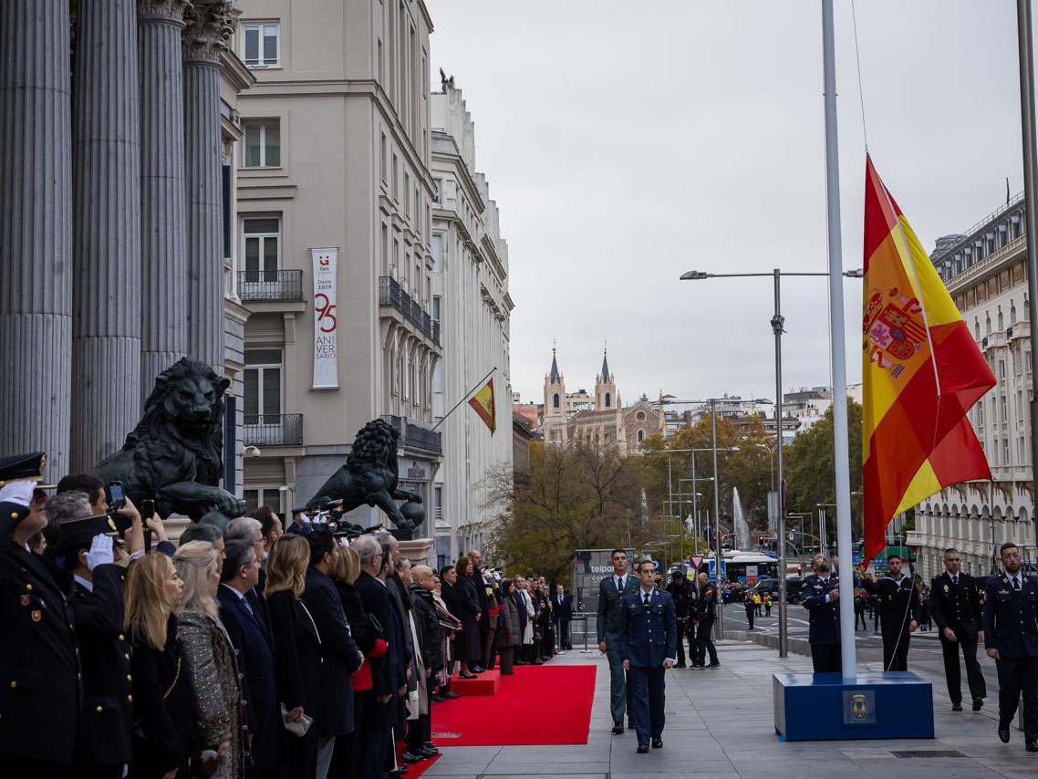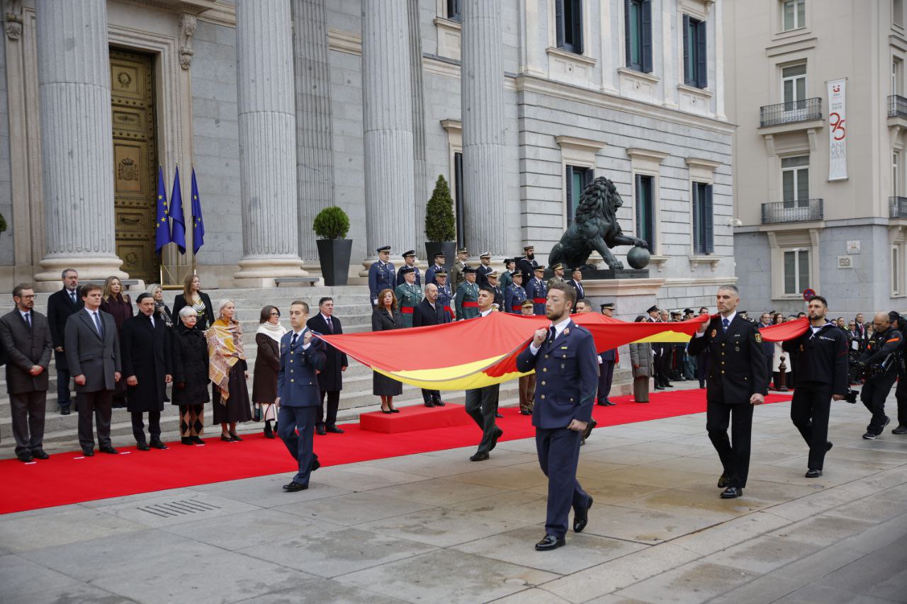 Antes del comienzo del acto central para conmemorar el Día de la Constitución ha tenido lugar en la Carrera de San Jerónimo el izado solemne de la bandera nacional.
