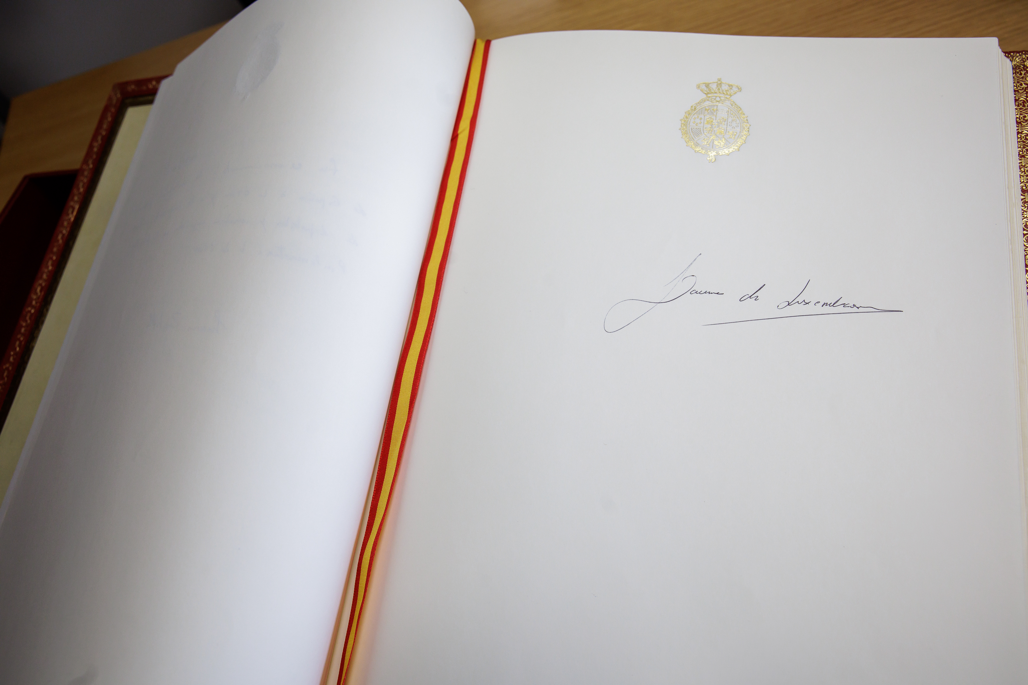 Los presidentes de ambas Cámaras recibirán a Su Alteza Real en el Patio de Floridablanca y lo acompañarán al Salón de Pasos Perdidos. Allí, saludará a los miembros de la Mesa del Congreso y del Senado y a continuación firmará en el libro de Honor del Congreso.